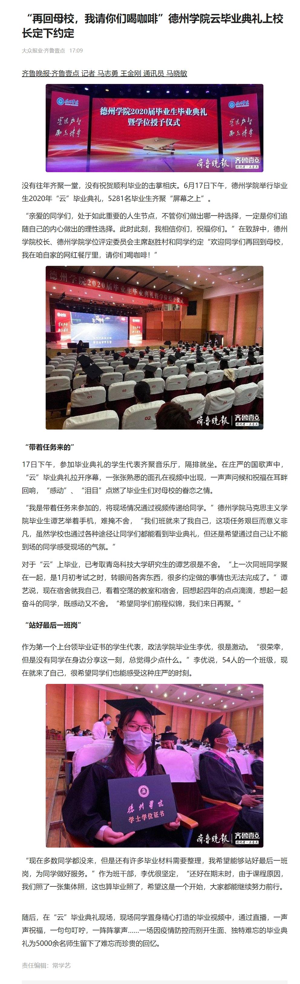 【齐鲁晚报 齐鲁壹点】“再回母校,我请你们喝咖啡”beat365官方网站云毕业典礼上校长定下约定
