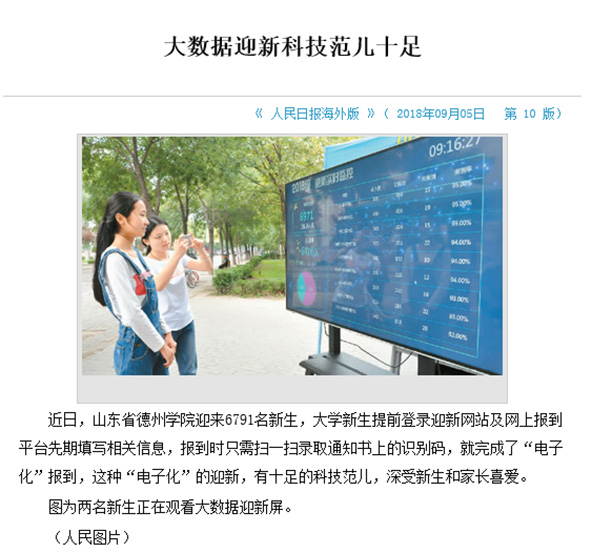 9月5日,《人民日报海外版》在第10版上,以“大数据迎新科技范儿十足”为题,对beat365迎新工作进行报道。