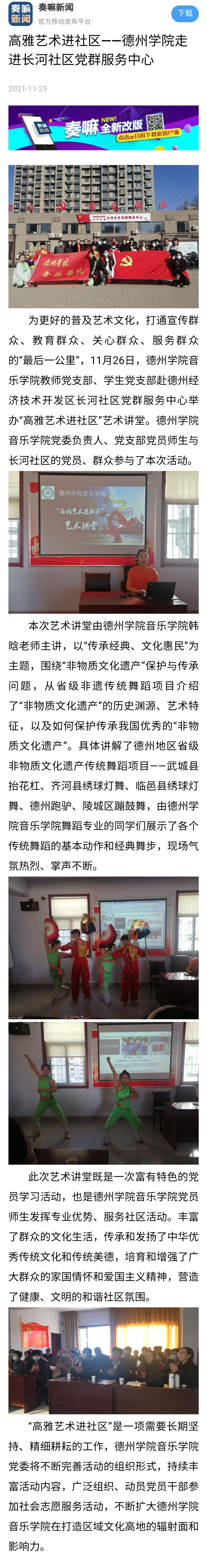 【奏嘛新闻 德州晚报】高雅艺术进社区——beat365官方网站走进长河社区党群服务中心