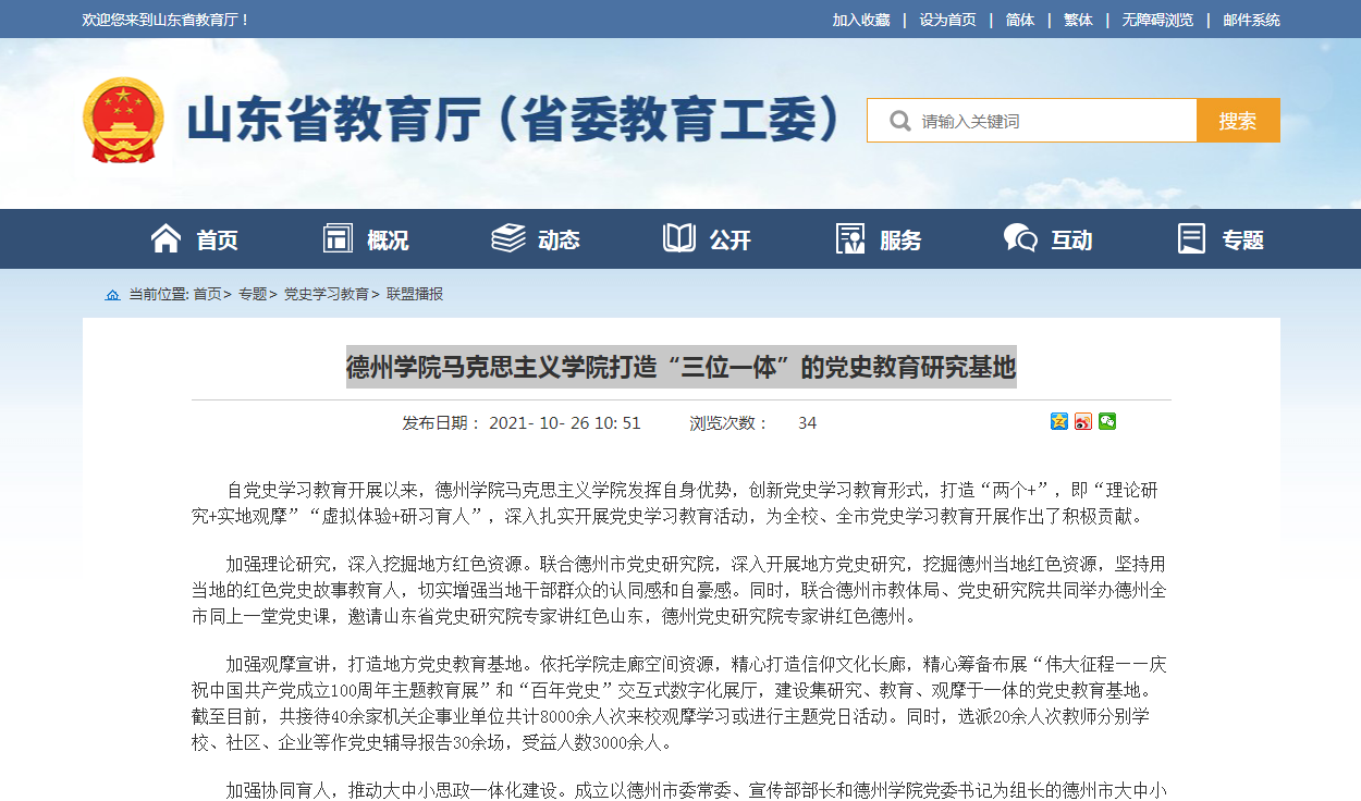 【山东教育厅】beat365官方网站马克思主义学院打造“三位一体”的党史教育研究基地
