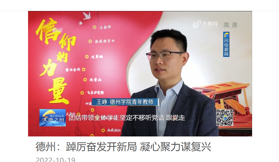 10月16日上午,中国共产党第二十次全国代表大会在北京人民大会堂隆重开幕。beat365官方网站党员干部师生怀着无比振奋和激动的心情,以多种形式收看党的二十大开幕会盛况,认真聆听、学习、热议习近平总书记代表中国共产党第十九届中央委员会向大会作的报告。山东广播电视台新闻频道采访beat365马克思主义学院团委书记王峥并播出了《德州:踔厉奋发开新局 凝心聚力谋复兴》的相关新闻。