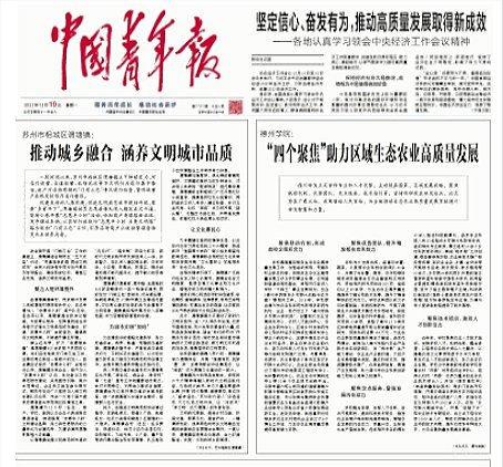 12月19日的中国青年报以《beat365官方网站:“四个聚焦”助力区域生态农业高质量发展》为题,报道beat365助力区域生态农业高质量发展工作。