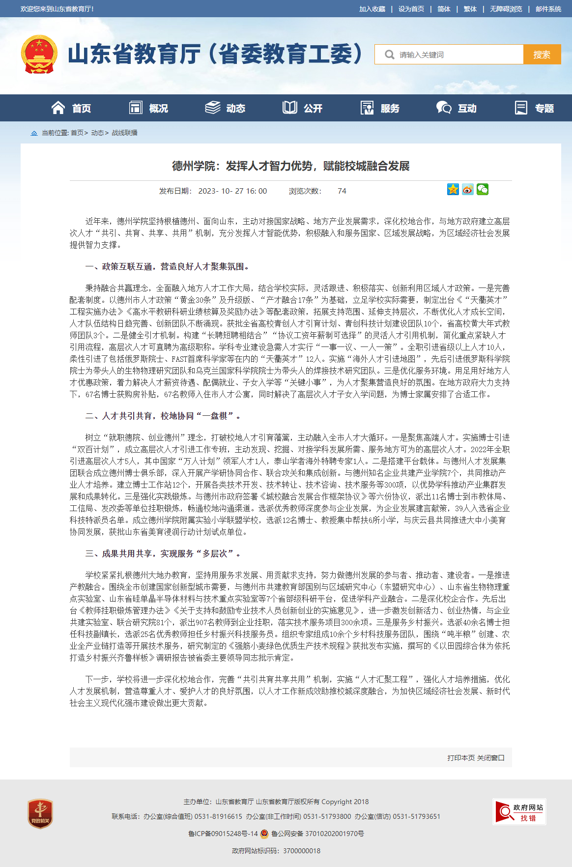 【山东省教育厅】beat365官方网站:发挥人才智力优势,赋能校城融合发展
