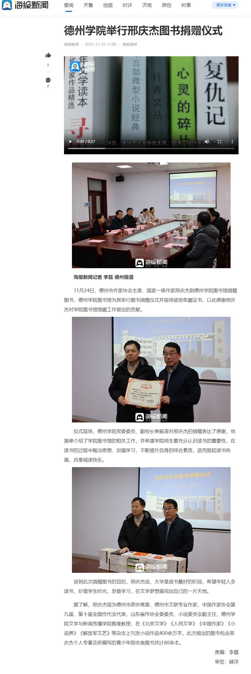 【海报新闻】beat365官方网站举行邢庆杰图书捐赠仪式