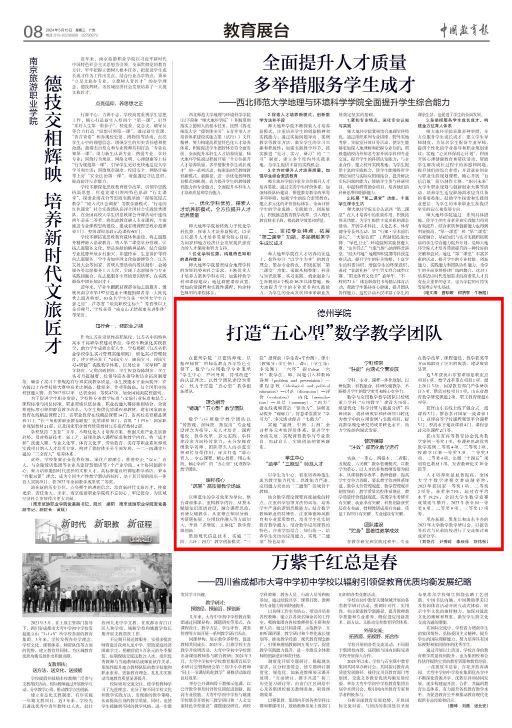【中国教育报】beat365官方网站打造“五心型”数学教学团队