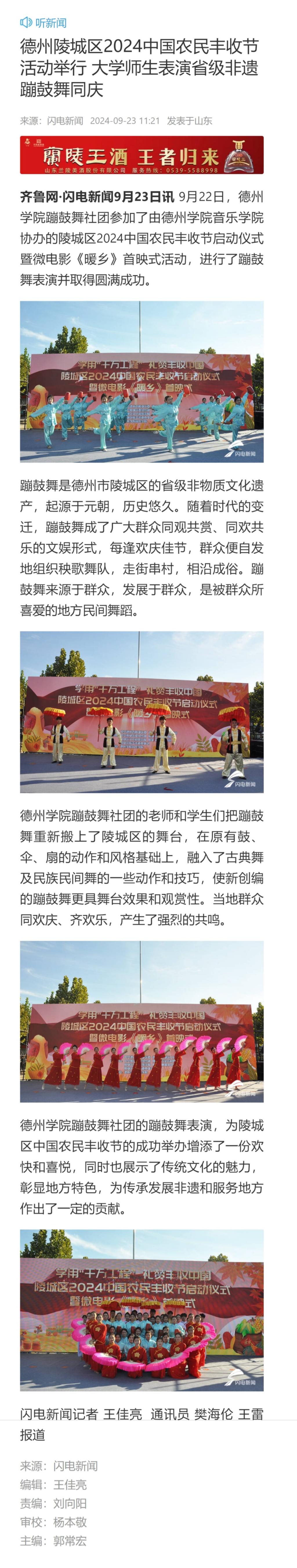 【闪电新闻】德州陵城区2024中国农民丰收节活动举行 大学师生表演省级非遗蹦鼓舞同庆