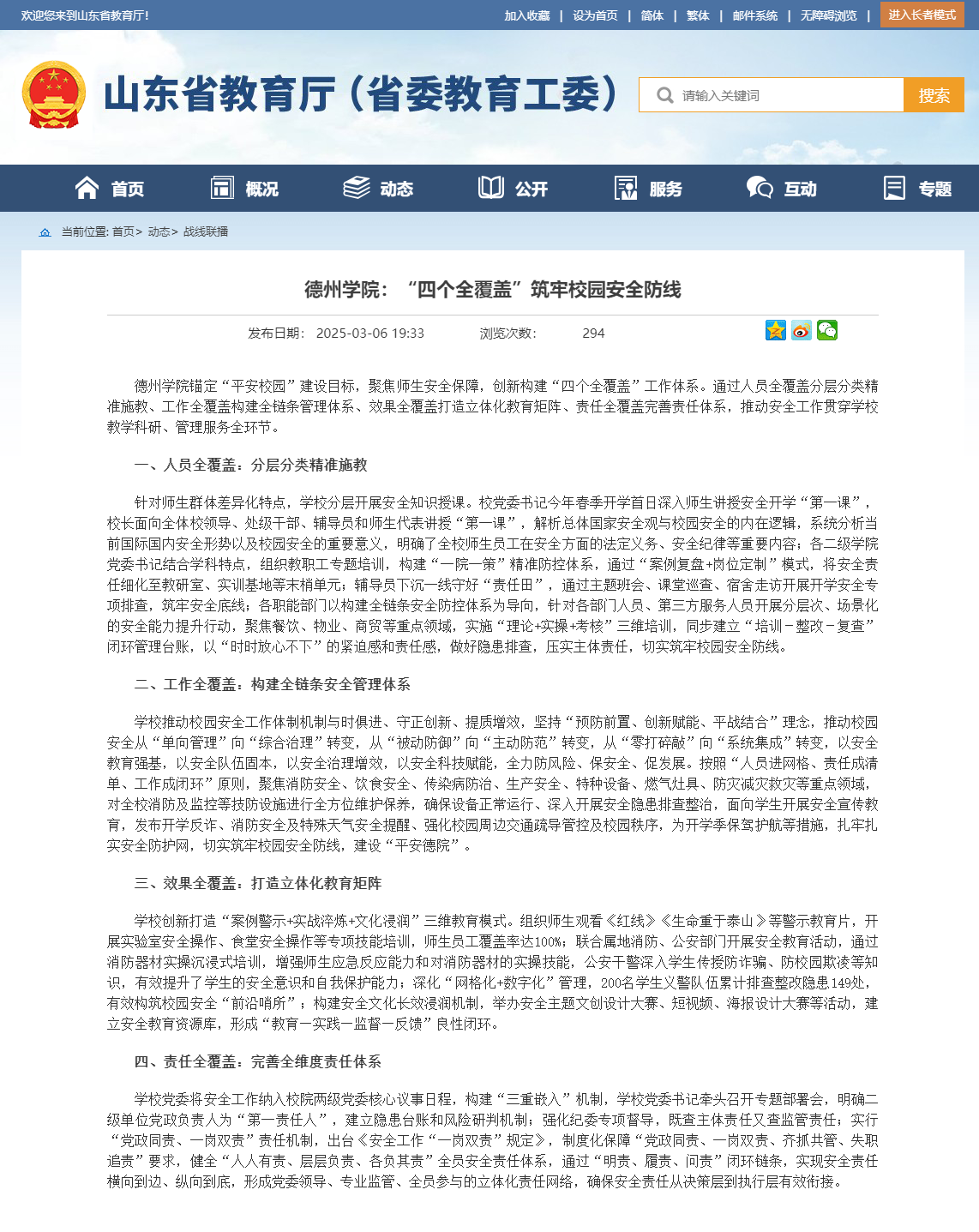【山东省教育厅】beat365官方网站:“四个全覆盖”筑牢校园安全防线