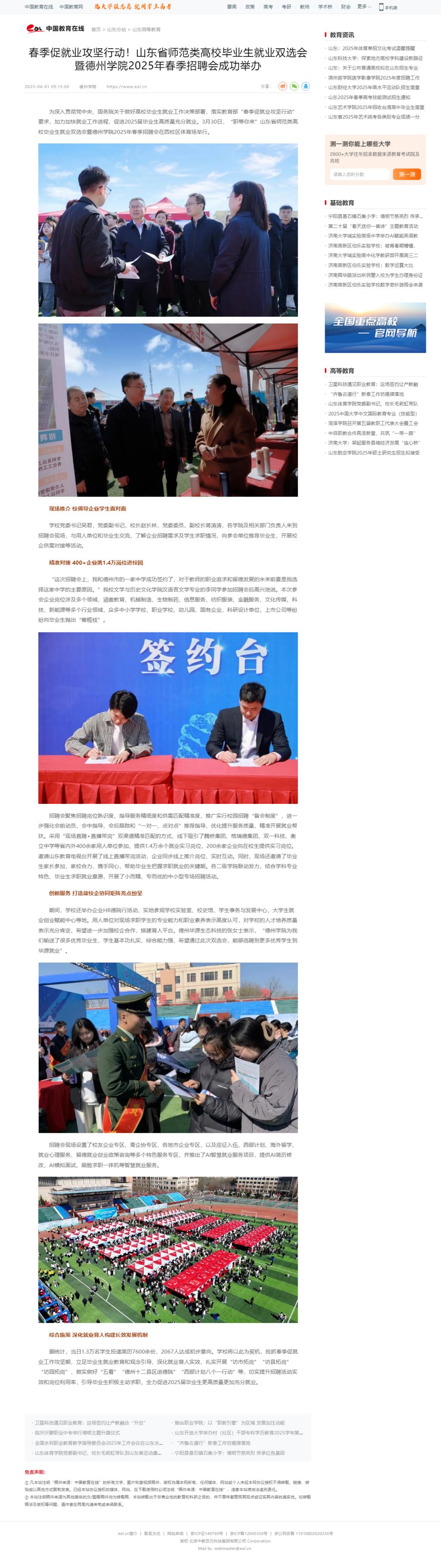 【德州市广播电视台】“职等你来”山东省师范类高校毕业生实习就业双选会暨beat365官方网站2025年春季招聘会举办