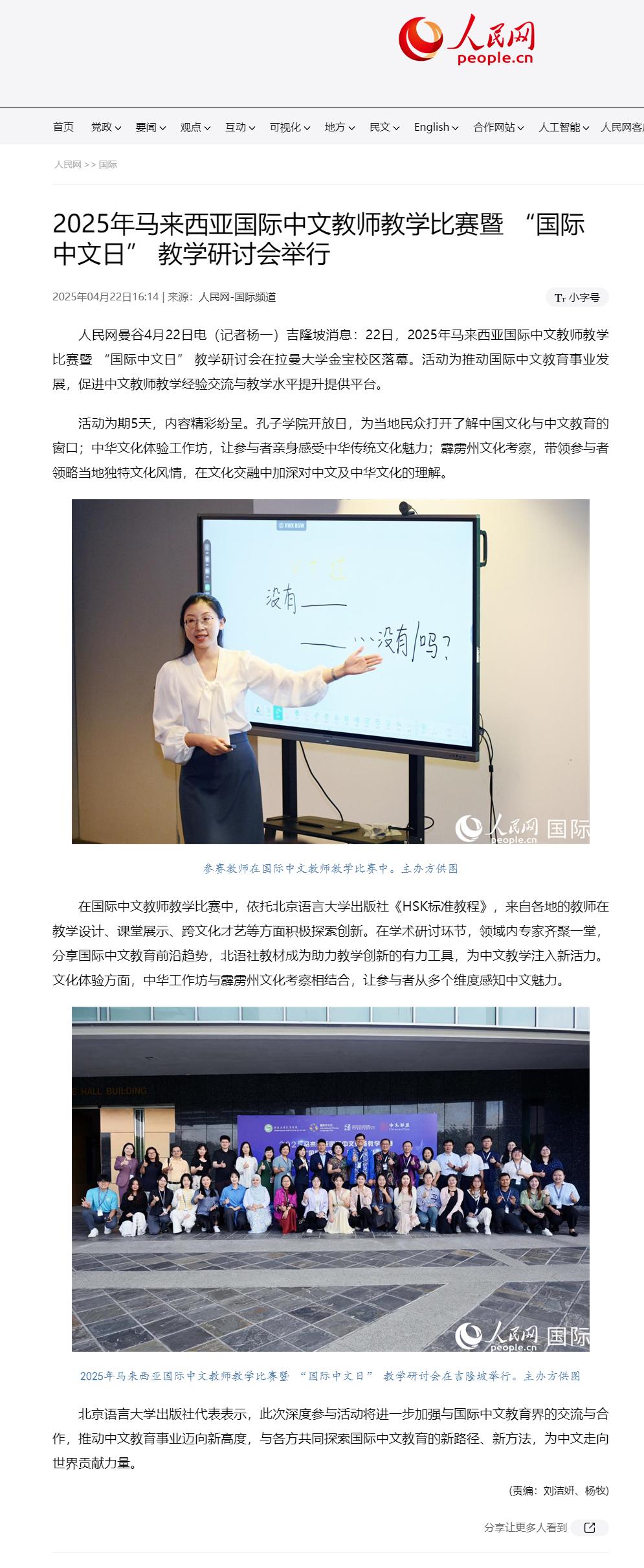 【人民网(国际)】2025年马来西亚国际中文教师教学比赛暨 “国际中文日” 教学研讨会举行