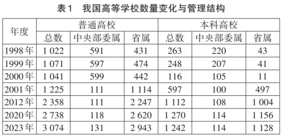 1998年,国务院机构改革,调整撤并了9个工业部门,采用“共建、调整、合作、合并”的八字方针,对其所属的91所普通高校、72所成人高校和202所中等专业学校实行了“中央与地方共建,以地方管理为主”的体制调整,从根本上改变了计划经济时期形成的“条块分割、部门办学”的局面,推动高等教育管理走向“三级办学、两级管理、以省为主”。我国高等教育逐渐走向中央和省级政府两级管理、以省级政府管理为主的新型管理体制。