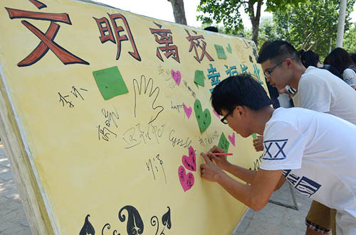 为让毕业生在文明安全离校的同时,也为母校留下美好的回忆,6月9日,纺织服装学院举办了“心系母校”系列活动。 活动分为“文明离校,幸福毕业”签名、“我为母校留纪念”物品赠送、“我和亲爱的母校”摄影作品展、“一书,一签,一份情”制作书签赠送四个板块。活动中,毕业生积极参与到签名活动中,表示一定会遵守承诺,文明离校。同时,还将自己的书籍、笔记等物品赠送给母校,写下自己对母校的期望和祝福。同时,大一和大二同学也亲手为毕业生制作了精美的书签,表达对他们的美好祝福,也为“毕业季”增添了一抹温情。