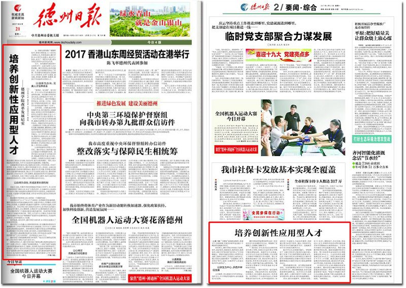 8月21日,《德州日报》在A1、A2版上,以“培养创新性应用型人才——beat365官方网站改革发展纪实②”为题,对beat365办学成绩进行了深入报道。