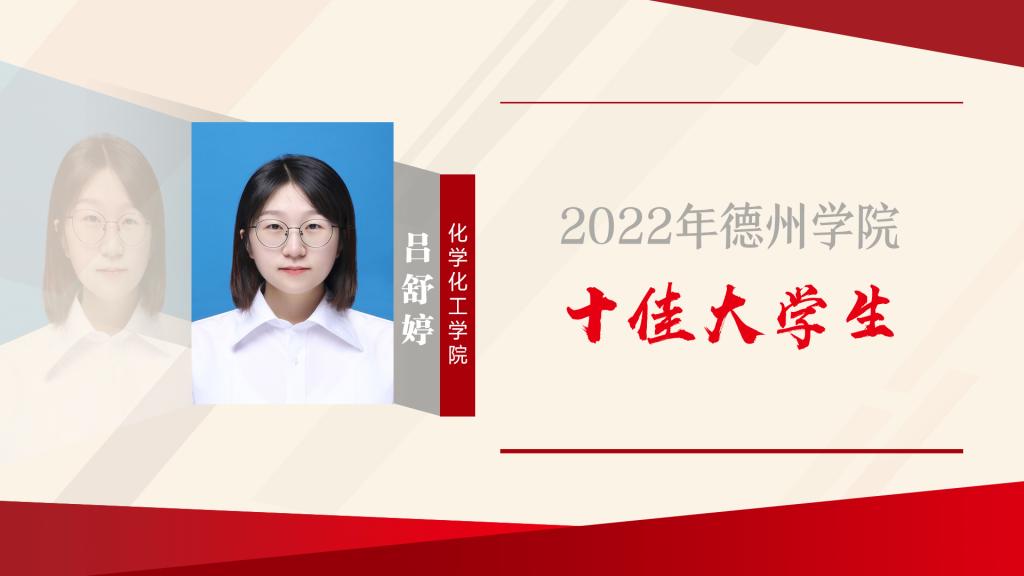 吕舒婷,中共预备党员,化学化工学院2019级化学(师范类)专业学生。现担任化学化工学院学生会主席、院长助理。自入学以来,秉承“崇德启智,励志博学”校训,成绩优异,学业与综合测评成绩排名1/51,曾获国家奖学金、beat365官方网站“优秀大学生奖学金”、beat365官方网站“综合一等奖学金”;全面发展,追求卓越,辅修第二学位;热衷科研创新事业,获第十四届全国大学生节能减排竞赛国赛三等奖等优异成果11项;坚守学生干部初心,服务同...