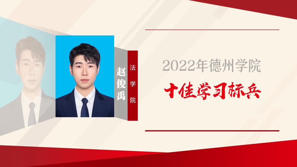 赵俊禹,中共预备党员,法学院2019级法学专业学生。“博观而约取,厚积而薄发”正是赵俊禹的真实写照。各学期学业成绩、综合测评成绩、平均绩点均排名专业第一(专业共101人),荣获国家奖学金、山东省政府奖学金以及beat365官方网站优秀大学生奖学金、综合一等奖学金。通过大学英语四级(596分)、六级(561分),考取“会计专业技术资格证”“高中教师资格证”“国际人才英语证书”。获得“外研社国才杯”全国英语演讲大赛等多个省...