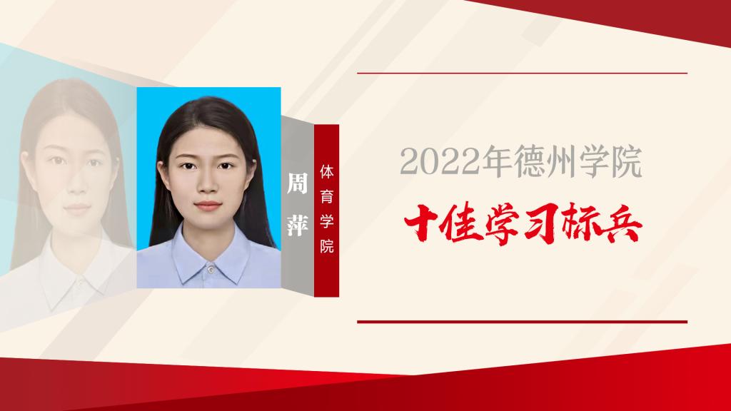 周萍,体育学院2018级体育教育专业学生。该生自入学以来,严格要求自己,自觉性强,刻苦学习,态度端正,目标明确,牢固地掌握了专业知识和技能,各科成绩优秀,做到了理论联系实际。大学四年以来成绩优秀,四年平均成绩绩点为3.98,学业成绩保持在前五,综合测评保持在前10。曾获得2019-2020学年获得校级三好学生,2020-2021学年获得综合三等奖学金、国家励志奖学金,2021-2022学年获得了2022届优秀毕业生。周萍积极提高自身...