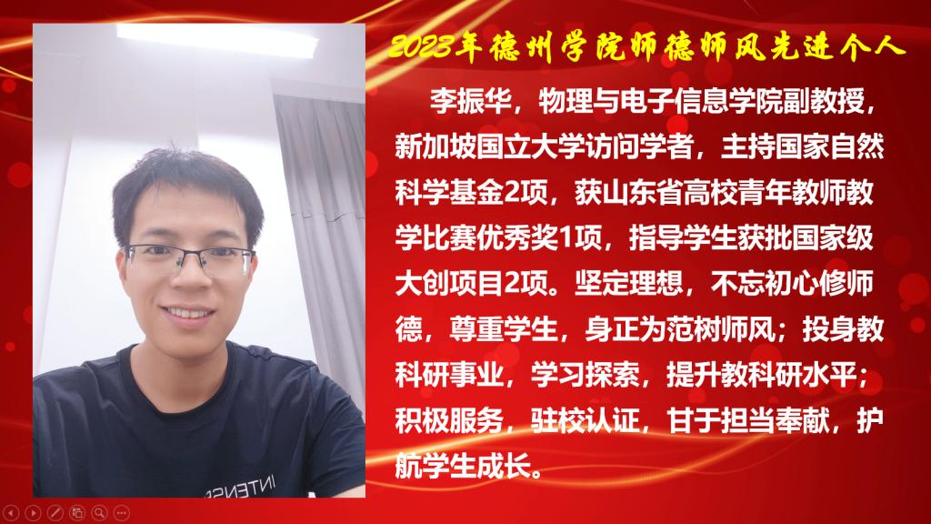 邵丽光,带头培育和践行社会主义核心价值观,模范履行岗位职责,在教育教学、科学研究等方面成绩显著。无违纪、无师德师风问题。近3年年度考核2次“合格”,1次“优秀”。一是开拓创新,做好教学工作。近三年来承担中国古代文学课程的教学工作。在教学过程中积极探索项目教学与案例教学,注重融合课程思政。获得beat365官方网站校级教学比赛三等奖1项。获得山东省2023年职工教育课题1项。在德州市第九中学挂职6个月。按照师范专业认...