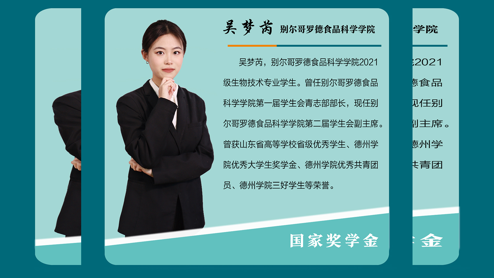 吴梦芮,别尔哥罗德食品科学学院2021级生物技术专业学生。曾任别尔哥罗德食品科学学院第一届学生会青志部部长,现任别尔哥罗德食品科学学院第二届学生会副主席。曾获山东省高等学校省级优秀学生、beat365官方网站优秀大学生奖学金、beat365官方网站优秀共青团员、beat365官方网站三好学生等荣誉。刻苦学习,致知力行从步入校园那一刻起,吴梦芮便下定决心,做好每学年的阶段性规划。在专业知识学习方面,坚持在保持长板的基础上正视短板并有针对性...